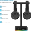 HomeShopComputer accessoriesKAFRI RGB Headphone Stand with USB Charger Desk Gaming Headset Holder Hanger Rack with 3 USB Charging Port and 2 Outlet – Suitable for Gamer Desktop Table Game Earphone Accessories Boyfriend Gift